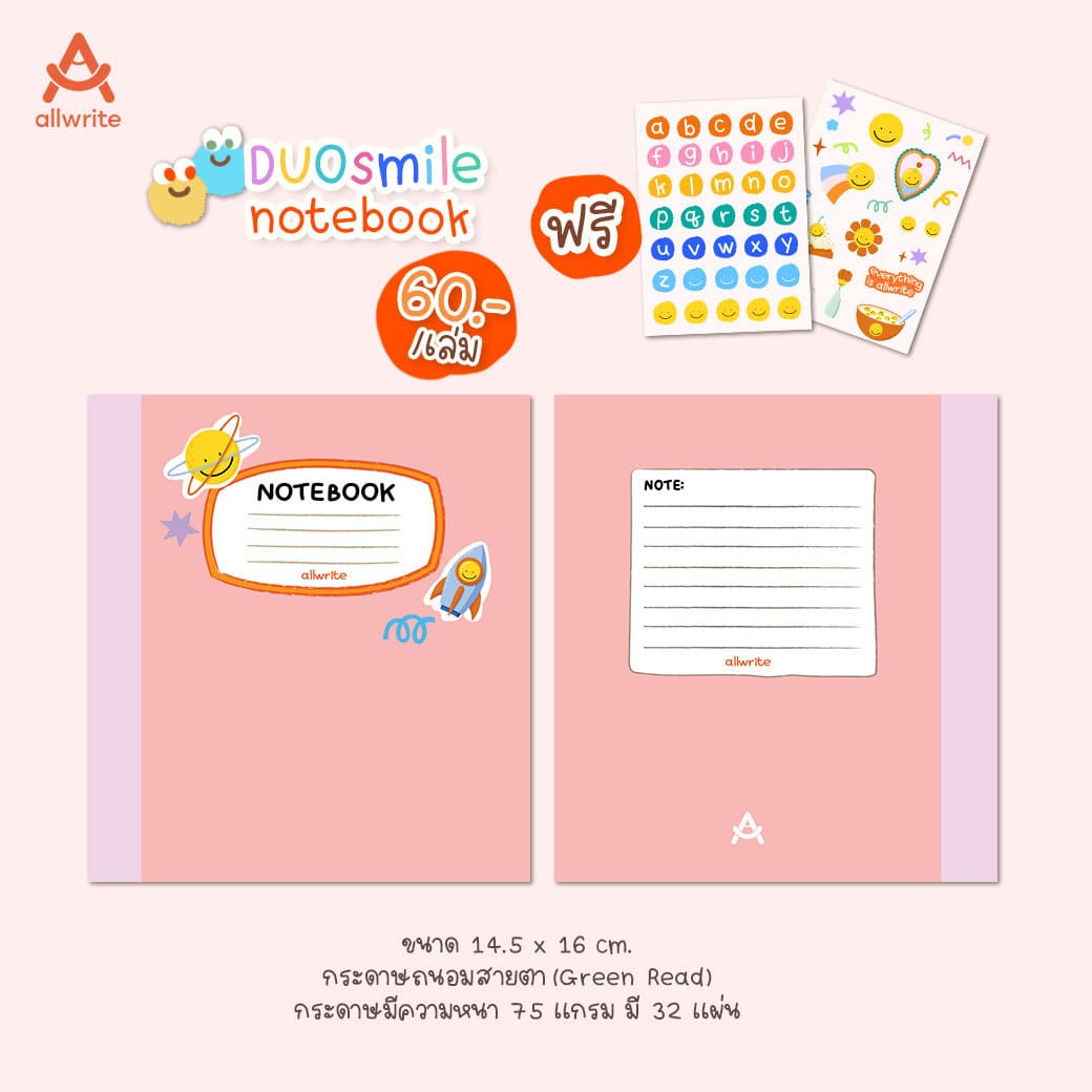 สมุดพร้อมสติ้กเกอร์, เนื้อในกระดาษถนอมสายตา 70 แกรม, เป็นแบบไม่มีเส้น มี 32 แผ่น